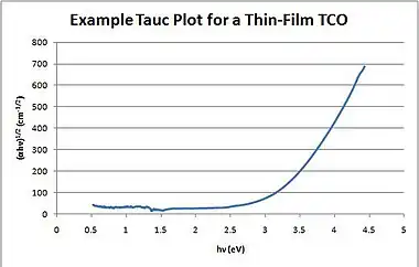 A Tauc plot[1] is used to determine the optical bandgap, or Tauc bandgap, of either disordered[2] or amorphous[3] semiconductors.