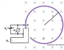 Since the charge of an electron is available from the Millikan experiment, the study of electrons in an magnetic field is the determination of its mass in accordance with: