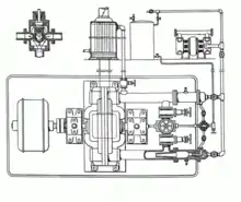 The Tesla turbine is a bladeless centripetal flow turbine invented by Nikola Tesla in 1913.[1] Nozzles apply a moving fluid to the edges of a set of discs. The engine uses smooth discs rotating in a chamber to generate rotational movement due to the momentum exchange between the fluid and the discs. The discs are arranged in an orientation similar to a stack of CDs on a pole.[2]