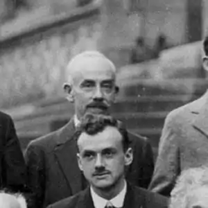 ![]() Théophile Ernest de Donder (1872 – 1957) at the 1927 Solvay Conference. Appearing in front of de Donder is Paul Dirac. | |