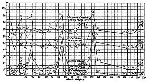 About half of Richards's scientific research concerned atomic weights, starting in 1886 with his graduate studies. On returning to Harvard in 1889, this was his first line of research, continuing up to his death. According to Forbes, by 1932 the atomic weights of 55 elements had been studied by Richards and his students.[6] Among the potential sources of error Richards uncovered in such determinations was the tendency of certain salts to occlude gases or foreign solutes on precipitation.[7] As an example of the care Richards used in his work, Emsley reports that he carried out 15,000 recrystallizations of thulium bromate in order to obtain the pure element thulium for an atomic weight measurement.[8]