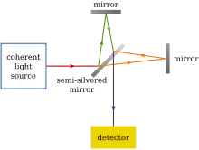 The Michelson–Morley experiment was designed to detect second-order effects of the "aether wind"—the motion of the aether relative to the earth. Michelson designed an instrument called the Michelson interferometer to accomplish this. The apparatus was sufficiently accurate to detect the expected effects, but he obtained a null result when the first experiment was conducted in 1881,[15] and again in 1887.[16] Although the failure to detect an aether wind was a disappointment, the results were accepted by the scientific community.[14] In an attempt to salvage the aether paradigm, FitzGerald and Lorentz independently created an ad hoc hypothesis in which the length of material bodies changes according to their motion through the aether.[17] This was the origin of FitzGerald–Lorentz contraction, and their hypothesis had no theoretical basis. The interpretation of the null result of the Michelson–Morley experiment is that the round-trip travel time for light is isotropic (independent of direction), but the result alone is not enough to discount the theory of the aether or validate the predictions of special relativity.[18][19]