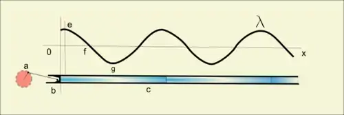 If v is the velocity of which waves travel along the pipe, and n the number of the revolutions of the crank a, then the wavelength λ is: