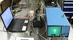 The Ti:sapphire laser was invented by Peter Moulton in June 1982 at MIT Lincoln Laboratory in its continuous wave version. Subsequently, these lasers were shown to generate ultrashort pulses through Kerr-lens modelocking.[5] Strickland and Mourou, in addition to others, working at the University of Rochester, showed chirped pulse amplification of this laser within a few years,[6] for which these two shared in the 2018 Nobel Prize in physics[7] (along with Arthur Ashkin for optical tweezers). The cumulative product sales of the Ti:sapphire laser has amounted to more than $600 million, making it a big commercial success that has sustained the solid state laser industry for more than three decades.[8][9]