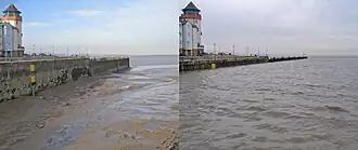 Famous examples of this effect are found in the Bay of Fundy, where the world's highest tides are reportedly found, and in the Bristol Channel. Less well known is Leaf Bay, part of Ungava Bay near the entrance of Hudson Strait (Canada), which has tides similar to those of the Bay of Fundy.[2] Other resonant regions with large tides include the Patagonian Shelf and on the continental shelf of northwest Australia.[3]
