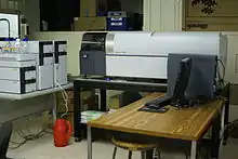 In time-of-flight mass spectrometry, ions are accelerated by an electrical field to the same kinetic energy with the velocity of the ion depending on the mass-to-charge ratio. Thus the time-of-flight is used to measure velocity, from which the mass-to-charge ratio can be determined.[6] The time-of-flight of electrons is used to measure their kinetic energy.[7]