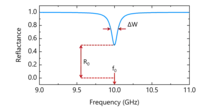 The reflection coefficient is determined by the coupling between cavity and waveguide.[11] When the frequency of microwave is resonant frequency, the reflectance, , of the cavity is expressed as follows: