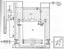 A schematic diagram of the apparatus for Millikan's refined oil drop experiment
