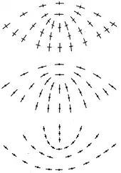 Unlike in cosmology and field theory, topological defects in condensed matter have been experimentally observed.[5] Ferromagnetic materials have regions of magnetic alignment separated by domain walls. Nematic and bi-axial nematic liquid crystals display a variety of defects including monopoles, strings, textures etc.[1] In crystalline solids, the most common topological defects are dislocations, which play an important role in the prediction of the mechanical properties of crystals, especially crystal plasticity.