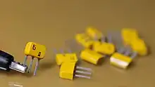 A transistor is a semiconductor device used to amplify or switch electrical signals and power. It is one of the basic building blocks of modern electronics.[1] It is composed of semiconductor material, usually with at least three terminals for connection to an electronic circuit. A voltage or current applied to one pair of the transistor's terminals controls the current through another pair of terminals. Because the controlled (output) power can be higher than the controlling (input) power, a transistor can amplify a signal. Some transistors are packaged individually, but many more in miniature form are found embedded in integrated circuits. Because transistors are the key active components in practically all modern electronics, many people consider them one of the 20th century's greatest inventions.[2]