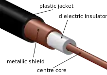 Coaxial cable is a type of transmission line, used to carry high frequency electrical signals with low losses. It is used in such applications as telephone trunk lines, broadband internet networking cables, high-speed computer data busses, carrying cable television signals, and connecting radio transmitters and receivers to their antennas. It differs from other shielded cables because the dimensions of the cable and connectors are controlled to give a precise, constant conductor spacing, which is needed for it to function efficiently as a transmission line.