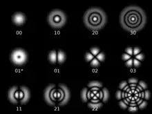 With p = l = 0, the TEM00 mode is the lowest order. It is the fundamental transverse mode of the laser resonator and has the same form as a Gaussian beam. The pattern has a single lobe, and has a constant phase across the mode. Modes with increasing p show concentric rings of intensity, and modes with increasing l show angularly distributed lobes. In general there are 2l(p+1) spots in the mode pattern (except for l = 0). The TEM0i* mode, the so-called doughnut mode, is a special case consisting of a superposition of two TEM0i modes (i = 1, 2, 3), rotated 360°/4i with respect to one another.