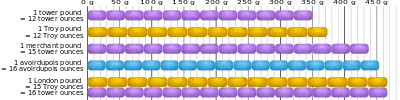 | Avdp. | Troy | Tower | Merchant | London | Metric | Avdp. | Troy | Tower | Troy | Tower | g | kg | |||||||||