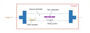 2D semiconductor materials are often synthesized using a chemical vapor deposition (CVD) method. Because CVD can provide large-area, high-quality, and well-controlled layered growth of 2D semiconductor materials, it also allows synthesis of two-dimensional heterojunctions.[13] When building devices by stacking different 2D materials, mechanical exfoliation followed by transferring is often used.[4][6] Other possible synthesis methods include electrochemical deposition,[14][15] chemical exfoliation, hydrothermal synthesis, and thermal decomposition. In 2008 cadmium selenide CdSe quasi 2D platelets were first synthesized by colloidal method with thicknesses of several atomic layers and lateral sizes up to dozens of nanometers.[16] Modification of the procedure allowed to obtain other nanoparticles with different compositions (like CdTe,[17] HgSe,[18] CdSexS1−x alloys,[19] core/shell[20] and core/crown [21] heterostructures) and shapes (as scrolls,[22] nanoribbons,[23] etc).