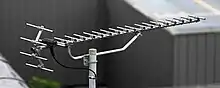 UHF television antenna on a residence. This type of antenna, called a Yagi–Uda antenna, is widely used at UHF frequencies.