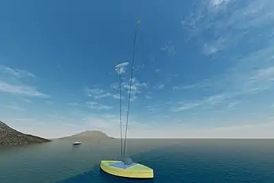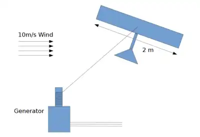 For instance, a system of tethered kites[23] could capture energy from high-altitude winds. Another concept uses a helium balloon with attached sails to generate pressure and drive rotation around a horizontal axis. Circular motion of ropes transfer kinetic energy to ground-based generator.[24]
