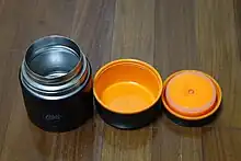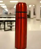 The term "thermos" became a household name for vacuum flasks in general. As of 2023, Thermos and THERMOS remains a registered trademark in some countries, including the United States,[5][6][7] but the lowercase "thermos" was declared a genericized trademark by court action in the United States in 1963.[8][9][10]