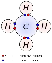 Four covalent bonds. Carbon has four valence electrons and here a valence of four. Each hydrogen atom has one valence electron and is univalent.
