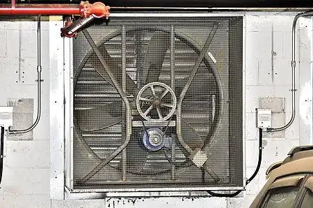 - Mechanical ventilation is the intentional fan-driven flow of outdoor air into and/or out from a building. Mechanical ventilation systems may include supply fans (which push outdoor air into a building), exhaust[3] fans (which draw air out of a building and thereby cause equal ventilation flow into a building), or a combination of both (called balanced ventilation if it neither pressurizes nor depressurizes the inside air,[3] or only slightly depressurizes it). Mechanical ventilation is often provided by equipment that is also used to heat and cool a space.