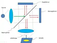 In AFM-IR, an AFM probe is used to measure the absorption response of the sample to infrared radiation. The general approach for AFM/FTIR is shown in Figure 10.[60]