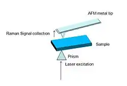 A typical approach in a TERS experiment is to focus the laser beam on a metal tip with the light polarized along the tip axis, followed by collection of the surface-enhanced Raman scattered light from the sample in the enhancement zone of the tip using optics.[14]