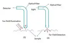 The essence of NSOM/FTIR is that it allows the detection of non-propagating evanescent waves in the near-field (less than one wavelength from the sample), thus yielding high spatial resolution. Depending on the detection modes of these non-propagating evanescent waves, two NSOM/FTIR instrumentations are available: apertureless NSOM/FTIR and aperture-based NSOM/FTIR.