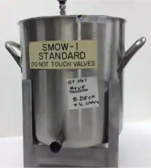 Vienna Standard Mean Ocean Water (VSMOW) is an isotopic standard for water, that is, a particular sample of water whose proportions of different isotopes of hydrogen and oxygen are accurately known. VSMOW is distilled from ocean water and does not contain salt or other impurities. Published and distributed by the Vienna-based International Atomic Energy Agency in 1968, the standard and its essentially identical successor, VSMOW2, continue to be used as a reference material.