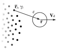 where i indexes domains in flow, ri — tracking point of domain and γi — his circulation. δ is a so-called "radius of discreteness" — small value that smooths the vortex and helps to get rid of singularity in the domain tracking point.[6] It equals to mean distance between domains.