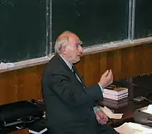 Vitaly Lazarevich Ginzburg, ForMemRS[1] (Russian: Вита́лий Ла́заревич Ги́нзбург; 4 October 1916 – 8 November 2009) was a Russian physicist who was honored with the Nobel Prize in Physics in 2003, together with Alexei Abrikosov and Anthony Leggett for their "pioneering contributions to the theory of superconductors and superfluids."[2]
