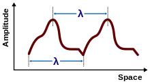 In the case of a periodic function F with period λ, that is, F(x + λ − vt) = F(x − vt), the periodicity of F in space means that a snapshot of the wave at a given time t finds the wave varying periodically in space with period λ (the wavelength of the wave). In a similar fashion, this periodicity of F implies a periodicity in time as well: F(x − v(t + T)) = F(x − vt) provided vT = λ, so an observation of the wave at a fixed location x finds the wave undulating periodically in time with period T = λ/v.[10]