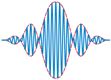 where is the amplitude envelope of the wave, is the wavenumber and is the phase. If the group velocity (see below) is wavelength-independent, this equation can be simplified as:[14]
