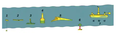 Generic wave energy concepts: 1. Point absorber, 2. Attenuator, 3. Oscillating wave surge converter, 4. Oscillating water column, 5. Overtopping device, 6. Submerged pressure differential, 7. Floating in-air converters.