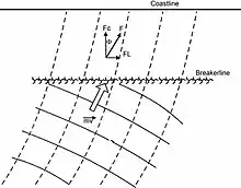Wave setup can be mathematically modeled by considering the variation in radiation stress.[3] Radiation stress is the tensor of excess horizontal-momentum fluxes due to the presence of the waves.[4][5]