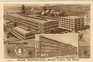 The Westinghouse Lamp Plant located in Bloomfield, New Jersey, was one of the lamp manufacturing plants of Westinghouse Electric Corporation.[1] The plant had a major involvement in supplying uranium metal for the world's first self-sustaining chain reaction in Chicago (Chicago Pile-1) in the early phase of the Manhattan Project to create the first atomic bomb.[2]