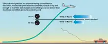 In gliding, wind gradients just above the surface affect the takeoff and landing phases of the flight of a glider. Wind gradient can have a noticeable effect on ground launches, also known as winch launches or wire launches. If the wind gradient is significant or sudden, or both, and the pilot maintains the same pitch attitude, the indicated airspeed will increase, possibly exceeding the maximum ground launch tow speed. The pilot must adjust the airspeed to deal with the effect of the gradient.[16]