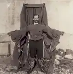 A wingsuit was first used in the US in 1930 by a 19-year-old American, Rex G Finney of Los Angeles, California. The goal was to increase horizontal movement and maneuverability during a parachute jump.[2][3] These early wingsuits used materials such as canvas, wood, silk, steel, and whalebone. They were not very reliable, although some "birdmen", such as Clem Sohn and Leo Valentin, claimed to have glided for miles.