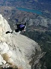 As compared to skydiving from an airplane, BASE jumping involves jumping from a "fixed object" such as a cliff. BASE jumping in its modern form has existed since at least 1978, but it was not until 1997 that Patrick de Gayardon made some of the first-ever wingsuit BASE jumps combining the two disciplines.[14] Compared to normal BASE jumping, wingsuit BASE jumping allows pilots to fly far away from the cliffs they jumped from, and drastically increase their freefall time before deploying a parachute. Since 2003, many BASE jumpers have started using wingsuits, giving birth to wingsuit BASE.[15]