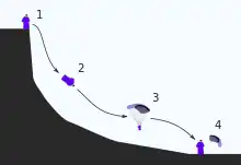 A wingsuit BASE jump begins by jumping from a cliff. Within seconds, air inflates the suit into a semi-rigid airfoil shape. By holding a proper body position, the wingsuit flier is able to glide forward at a ratio of 3:1, meaning that they are moving forward three feet for every foot of descent (or 3 meters for every meter of descent).[16]
