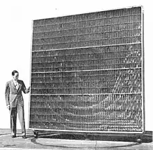 In one journal, entitled Proceedings of the IRE (see ref below), Kock describes a new type of antenna applying the optical properties of Radio waves. It is in fact a metallic lens, which focuses electromagnetic waves "...from short waves up to wavelengths of perhaps five meters or more."
