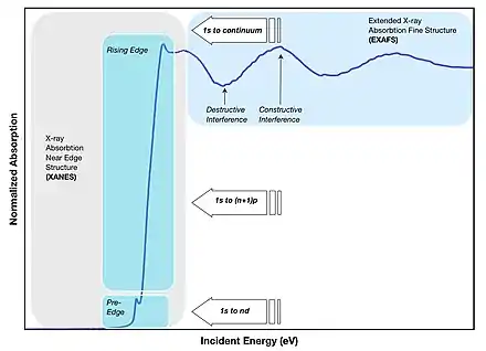 There are three main regions found on a spectrum generated by XAS data which are then thought of as separate spectroscopic techniques (Figure 2):
