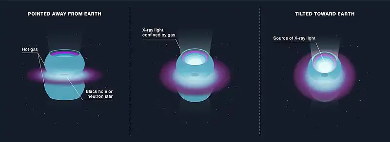 An Aerobee 150 rocket launched on June 19, 1962 (UTC) detected the first X-rays emitted from a source outside our solar system[7][8] (Scorpius X-1).[9] It is now known that such X-ray sources as Sco X-1 are compact stars, such as neutron stars or black holes. Material falling into a black hole may emit X-rays, but the black hole itself does not. The energy source for the X-ray emission is gravity. Infalling gas and dust is heated by the strong gravitational fields of these and other celestial objects.[10] Based on discoveries in this new field of X-ray astronomy, starting with Scorpius X-1, Riccardo Giacconi received the Nobel Prize in Physics in 2002.[11]