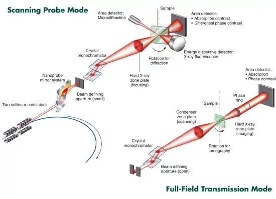 The combination of diffraction, fluorescence, and transmission contrast in a single tool provides unique characterization capabilities for nanoscience. Current hard X-ray microprobes based on Fresnel zone plate optics have demonstrated a spatial resolution of 150 nm at a photon energy of 8-10 keV. With advances in the fabrication of zone plate optics, coupled with an optimized beamline design, the performance goal is a spatial resolution of 30 nm. The nanoprobe covers the spectral range of 3-30 keV, and the working distance between the focusing optics and the sample are typically in the range of 10–20 mm.
