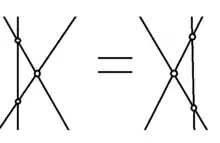 Set-theoretic solutions were studied by Drinfeld.[9] In this case, there is an -matrix invariant basis for the vector space in the sense that the -matrix maps the induced basis on to itself. This then induces a map given by restriction of the -matrix to the basis. The set-theoretic Yang–Baxter equation is then defined using the 'twisted' alternate form above, asserting