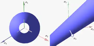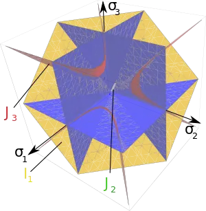The plane is also called the Rendulic plane. The angle is called stress angle, the value is sometimes called the Lode parameter[4][5][6] and the relation between and was first given by Novozhilov V.V. in 1951,[7] see also [8]