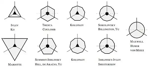 There are several different yield surfaces known in engineering, and those most popular are listed below.