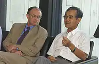 Totsuka was diagnosed with colorectal cancer and underwent surgery for it in 2000. In 2006, after cancer spread to his lung, he retired from his position at KEK, but served as a director of research at the Japan Society for the Promotion of Science. Totsuka died on July 10, 2008.[5] Nobel Prize winning physicist Masatoshi Koshiba was told that if Totsuka could extend his lifespan by eighteen months, he must receive the prize.[12] In 2015, the evidence provided by the 1998 and 2001 experiments did result in a Nobel Prize for Physics, given to Takaaki Kajita from the Super-Kamiokande Observatory and Arthur McDonald from the Sudbury Neutrino Observatory (SNO) "for the discovery of neutrino oscillations, which shows that neutrinos have mass".[2][13][14]