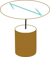 It consists of a Z-shaped tube with open ends, filled with a liquid, and set on top of a spinning table. If the tube were straight, the liquid would immediately fly out one end or the other of the tube as it began to spin. By bending the ends of the tube back towards the center of rotation, a shift of the liquid away from center will result in the water level in one end of the tube rising and thus increasing the pressure in that end of the tube, and consequently returning the liquid to the center of the tube. By measuring the rotational speed and the distance from the center of rotation to the liquid level in the bent ends of the tube, the pressure reduction inside the tube can be calculated.