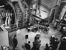 The Soviets were equally concerned about this, and even though it was the height of the Cold War, Artsimovich invited UKAEA to bring their laser system to the Kurchatov Institute and independently measure the performance.[115] Artsimovich had previously called their system "brilliant."[116] The team became known as "the Culham five",[106] performing a series of measurements in late 1968 and early 1969. The resulting paper was published in November 1969[117] and convinced the fusion research field that the tokamak was indeed reaching the levels of performance the Soviets claimed. The result was a "veritable stampede" of tokamak construction around the world,[89] and it remains the most studied device in the fusion field.[13]